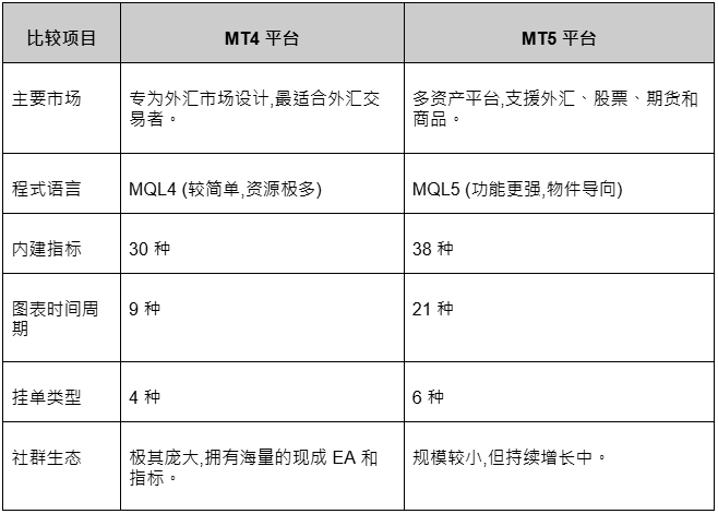 这是许多新手都会遇到的问题。MT5 (MetaTrader 5) 是 MT4 的后继版本,功能更强大。那么,为什么 MT4 平台依然如此受欢迎?选择哪一个更适合你?