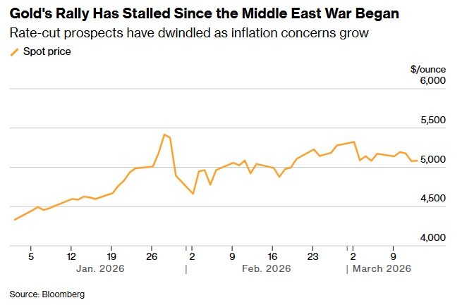 持续的冲突削弱了投资者对黄金的兴趣,市场出现震荡交易,取代了长期的上涨行情,投资者为了补充其投资组合其他部分的保证金而抛售黄金。然而,金价今年迄今仍上涨约18%,并基本保持在5000美元/盎司以上的水平。