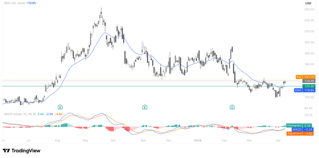 技术面上,股价经历深度回调后已在低位企稳反弹,成功脱离前期超卖区间,短期关键压力位于 130-135 美元一带,支撑则看 115-120 美元。若放量突破关键阻力可看高至 160 美元上方,回踩后的价格表现仍值得关注,中期市场关注 140–170 美元区间的价格表现,短期需警惕波动风险。