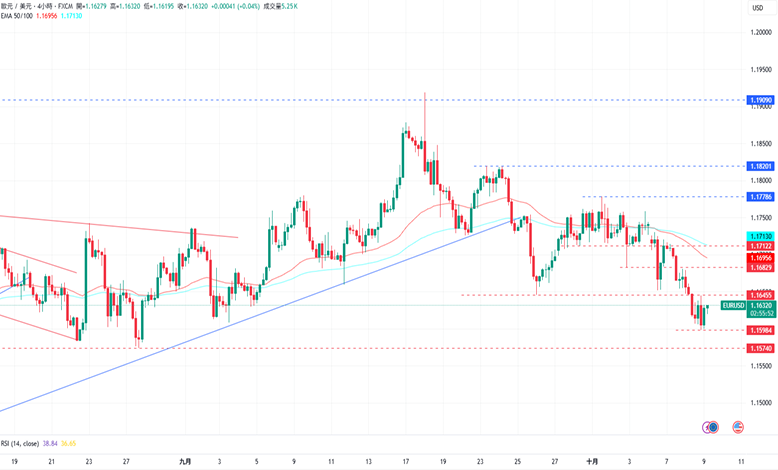 周三,欧元/美元下跌至1.16279美元。即将卸任的法国总理勒克努表示,他坚信法国能达成2026年预算协议,并透露总统马克宏可能在未来48小时内提名新任总理。经济数据方面,德国8月季调后工业产出月率为4.3%,远差于预期的-1.00%,前值为1.30%。美元部分,美联储公布的9月联邦公开市场委员会(FOMC)会议纪要显示,多数官员认为今年仍有必要进一步降息,对于后续利率应下调多少存在意见分歧。展望后市,欧元区将公布德国8月季调后贸易帐,而美国市场将关注美联储主席以及鲍曼、巴尔等美联储理事的谈话内容。