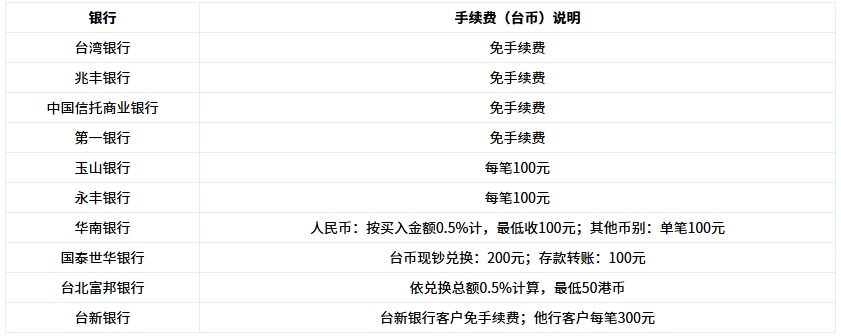 以下整理的是各银行以台币兑换外币现钞时所收取的手续费;若是透过外币账户或外币ATM提领现钞,则需留意前文提到的汇差成本喔~