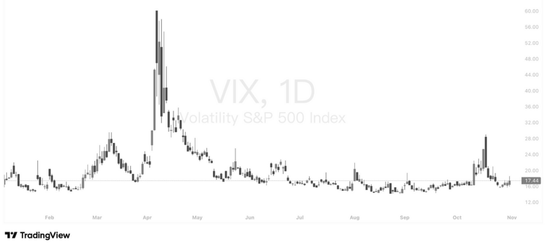从VIX波动率指数日线走势来看,近期整体维持在16–18区间内震荡整理,处于年内相对低位。尽管波动率持续受抑,显示市场整体风险偏好仍强,但短期来看,VIX已呈现低位反弹迹象,暗示部分投资者开始进行防御性布局。若VIX突破18.5–19上方压力区,或意味着市场短期波动可能加剧,对美股指数构成一定压制