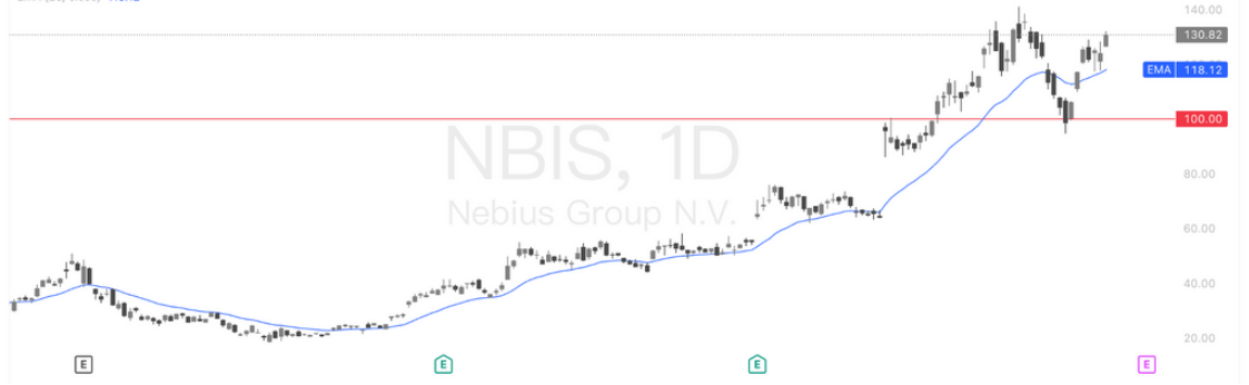 技术面显示,Nebius(NBIS)股价在触及100美元支撑区后迅速反弹,重新站上20日EMA(118.12),显示买盘力量明显增强。目前价格运行于短期均线上方,MACD快慢线接近金叉且柱状图由负转平,动能正逐步修复。若价格能突破前高134美元,将打开进一步上行空间,目标或指向140美元区域;反之,若跌破EMA并回落至118美元下方,则短线反弹结构将受损。整体来看,趋势仍处于中期上升通道内,财报前技术面维持积极偏多的预期。