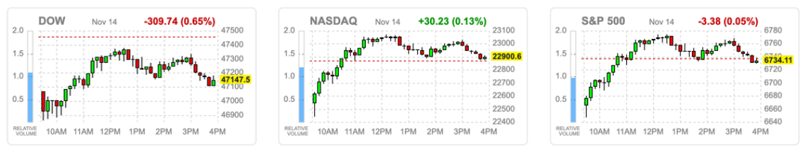 上周五,英伟达反弹近2%,带动纳指扭转三连跌,但标普反弹失败、道指两连阴;全周看三大指数仍“惊险收红”,唯纳指连跌两周。比特币周五跌破 95,000 美元,周一亚市低见 93,000 美元 ,年内涨幅被完全抹平,较 10 月高点跌超 26%。