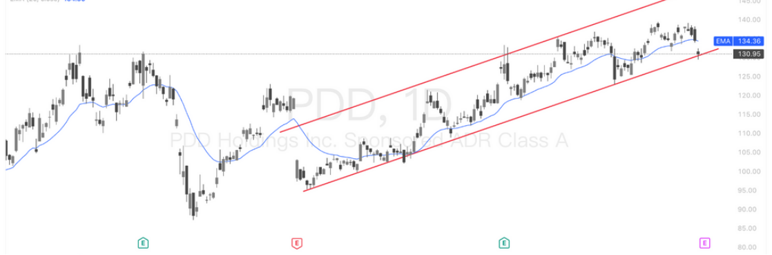 PDD回踩上升通道下轨,财报前临关键支撑考验