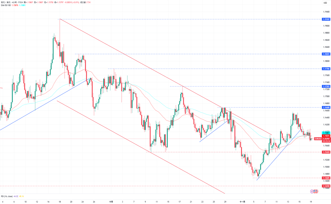 周二,欧元/美元下跌至1.15807美元。在美元受避险需求与利率预期支撑的情况下,欧元兑美元连续第二天跌破1.1600水平。欧洲方面,由于周二没有公布重要经济数据,因此短期欧元走势完全受到美元主导。美国方面,截至10月18日当周首次申请失业救济人数升至23.2万人,显示就业市场略显疲软,同时,8月工厂订单月率增长1.4%,符合市场预期。虽然过去两周美聯儲官员多次释出鹰派讯号,但近期数据提高了美聯儲在12月会议上降息25个基点的可能性。展望后市,周三美国将公布8月贸易帐与美聯儲货币政策会议纪要,而欧元区则将公布9月季调后经常帐与10月CPI终值。