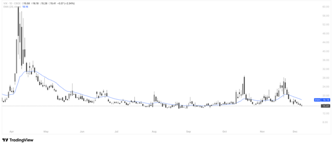 VIX跌至阶段低点,市场情绪维持高位稳定