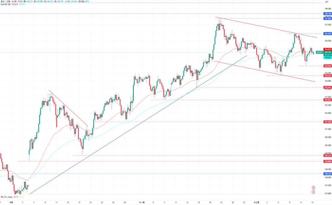 周五,由于交易员相信日本央行将在本周的货币政策会议上升息,美元/日元上涨至155.799日元。日本方面,据《路透社》报导,据三位消息人士称,日本央行可能在本周维持将继续升息的承诺,但会强调进一步加息的步伐将取决于经济对每次加息的反应。美元方面,美国美联储(Fed)降息25个基点,为今年第三次降息,尽管美联储已经降息,但它暗示将暂停宽松周期,进入观望期,以消化因美国政府停摆而延迟发布的经济数据。展望后市,周一美国经济议程将公布12月纽约联储制造业指数与12月NAHB房产市场指数,日本则将公布第四季度短观指数。