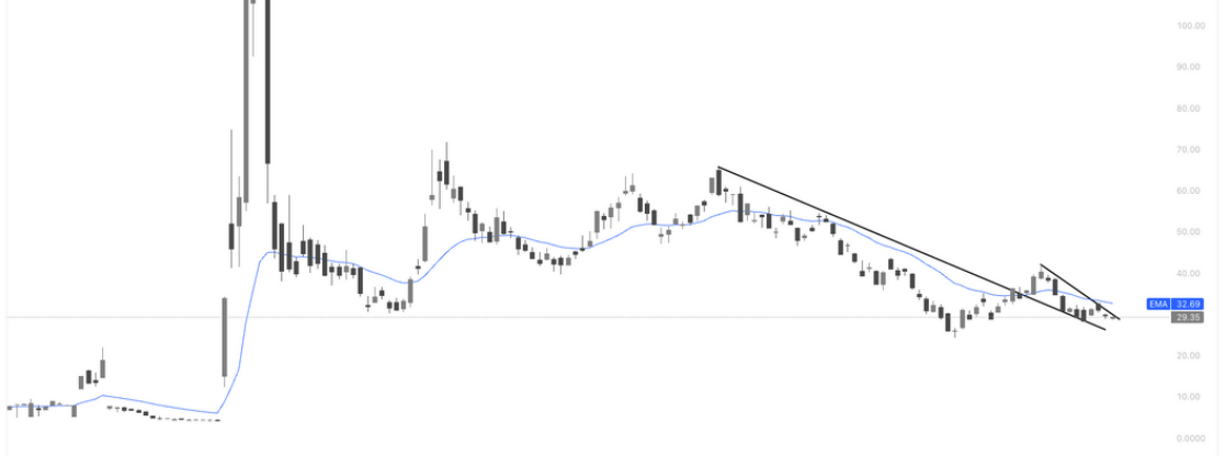 从日线结构看,BMNR 在前期回调后已运行至下降通道尾端,股价于 29–30 美元区间反复企稳并紧贴 EMA 运行,下行动能明显减弱,显示抛压正在逐步释放;只要通道下沿不被有效跌破,当前更偏向通过震荡完成时间换空间,一旦重新站上 EMA 并向上突破短期下降趋势线,技术结构将转向修复反弹阶段,技术面整体偏谨慎看多。