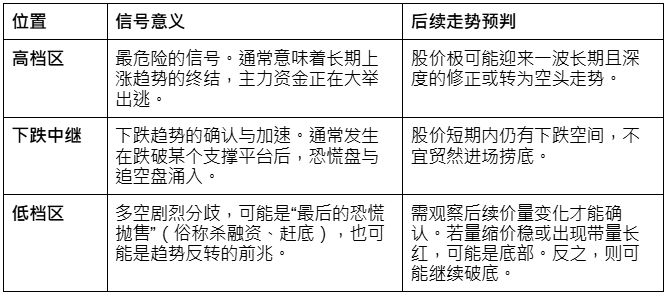 同样是放量下跌,发生在股价循环的不同位置,其背后透露的讯息截然不同。学会辨别股价的相对位阶,是解读此信号的关键。