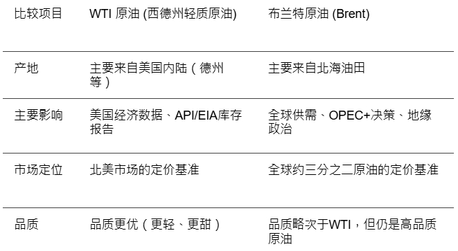 在交易原油差价合约时,你会看到两个主要的名字:WTI和布兰特(Brent)。它们是全球最重要的两大原油基准,了解其差异有助于你做出更精准的判断。