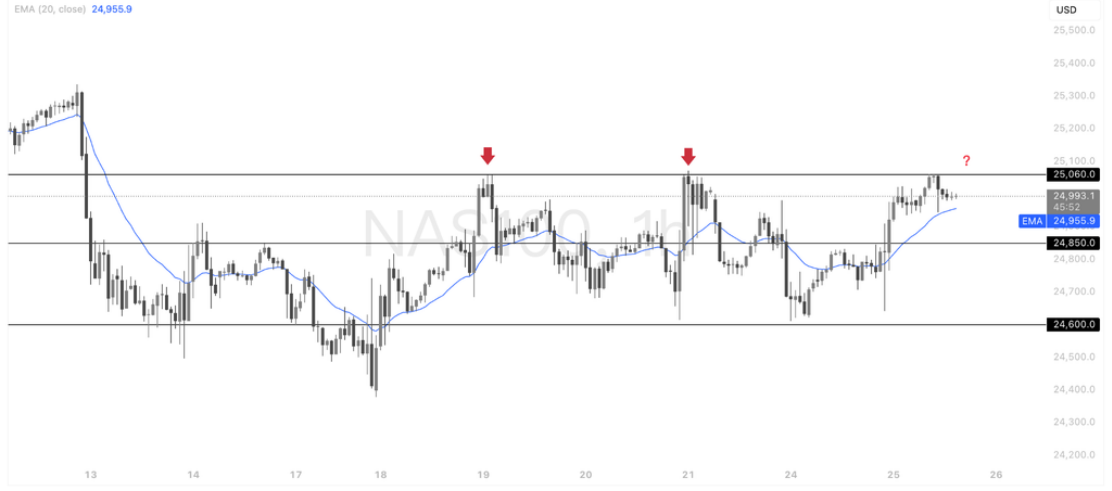 纳指测试区间上沿,25,060成关键分水岭