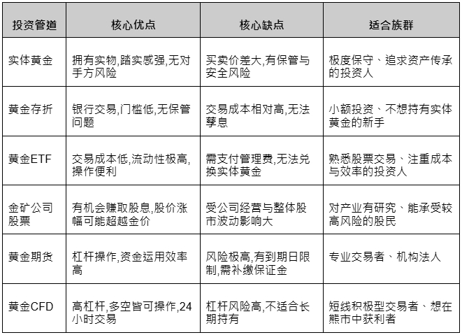 各管道深度解析:找到你的命定黄金投资法